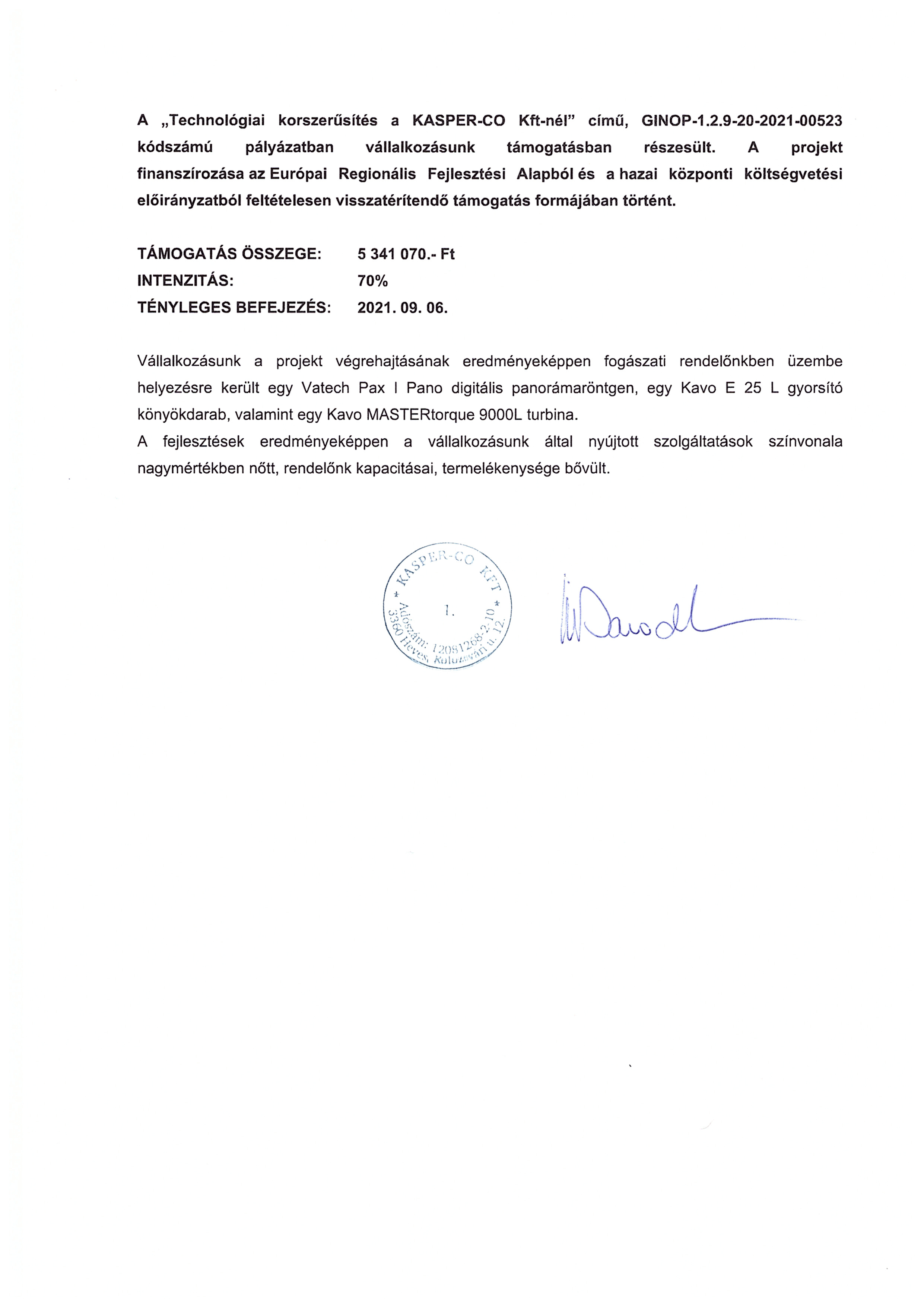 Honlapunk a GOP-2009-2.1.1/A Mikro- kis- és középvállalkozások technológia fejlesztése projekt keretében jött létre az Európai Unió támogatásával, és a Nemzeti Fejlesztési Ügynökség segítségével, valamint a Magyar Gazdaságfejlesztési Központ Zrt (1139 Budapest, Váci út 83.) közreműködésével. A fejlesztés keretei között cégünk saját domain nevet regisztrálhatott egy hozzátartó weblap elkészítésével együtt, továbbá rendelőnket bővíthettük egy Planmeca DIXI3 intraorális kamera rendszerrel és egy Cration CLD-005 Whitestar sebészeti dióda lézerrel.